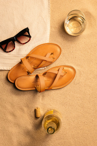 Luxury Smooth Leather Sandal in Tobacco